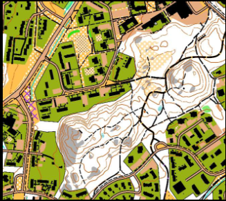 Tämä on helppo, tästä kyllä selviätte. Kartoittaja on onnistunut oivallisesti, nykysuuntauksen mukaisesti, kuvaamaan kartalle vain isoimmat ja selkeimmät kohteet, jotta kovavauhtiset suunnistajat eivät sorru turhaan näpertelyyn. Käyrätkin on säästetty myöhempään käyttöön. Isoista kohteista kun puhutaan, on syytä huomata, että kun tälle kartalle on kuvattu jyrkänne, niin ylös on turha yrittää, alas toki aina pääsee.