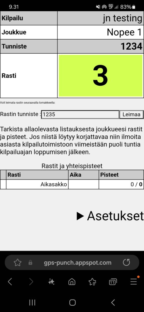 Paina SUBMIT, jonka jälkeen leimaussivusto avautuu ja olet valmis leimaamaan rasteilla.