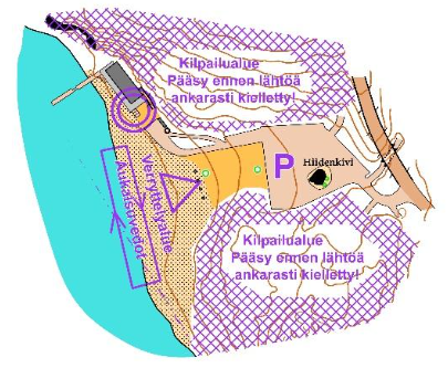 Pysäköinti: Uimarannan P-paikka, jos tila loppuu kesken, niin sitten läheisellä ns ”soutustadionin p-alueelle” Rykmentintien eteläpuolella.